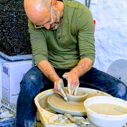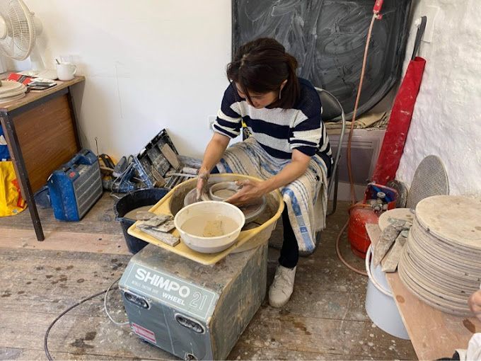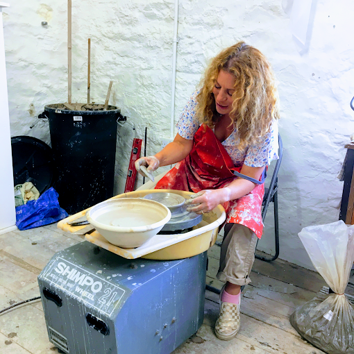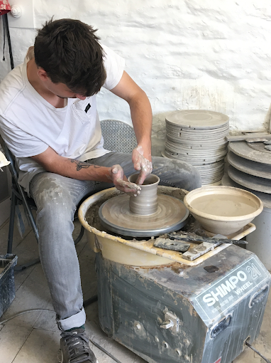 "Fun pottery making sessions, with wet clay on the pottery-wheel. "